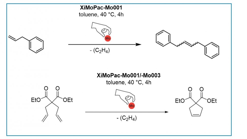Furthermore, to carry out efficient olefin metathesis, catalyst poisoning impurities need to be eliminated from the substrate. For drying and effective, safe substrate pretreatment we highly recommend the non-pyrophoric and easy-to use triethyl aluminum paraffin pellets (called XiMoPac-Al001), also available through our webshop.